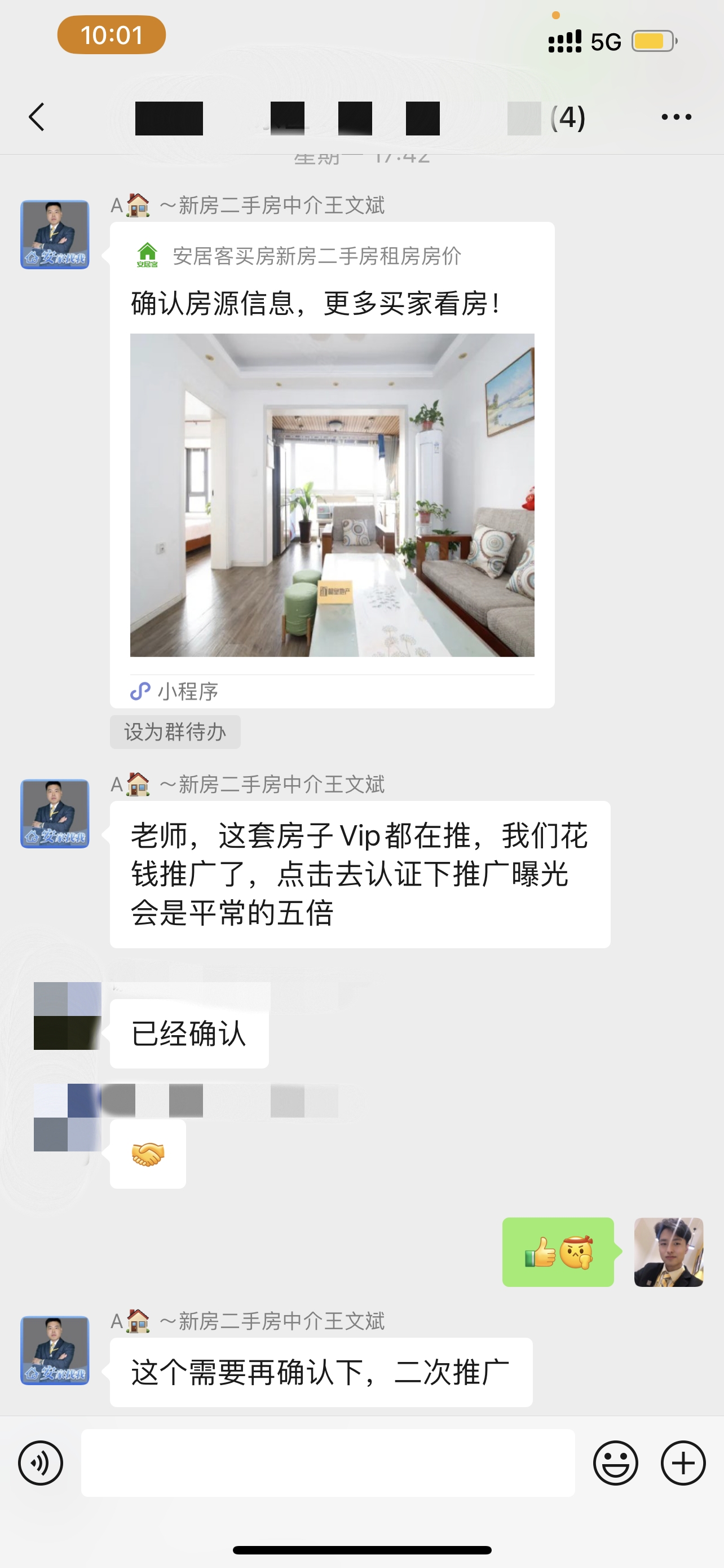 為了讓謝老師能夠,實時掌握最新的動態(tài),我們成立了專項反饋小組,微信群每天實時更新推廣效果、邀約、帶看、面談等進(jìn)度。